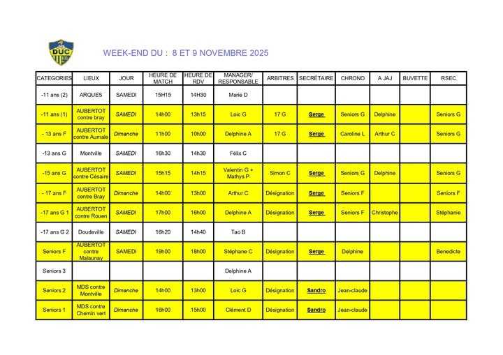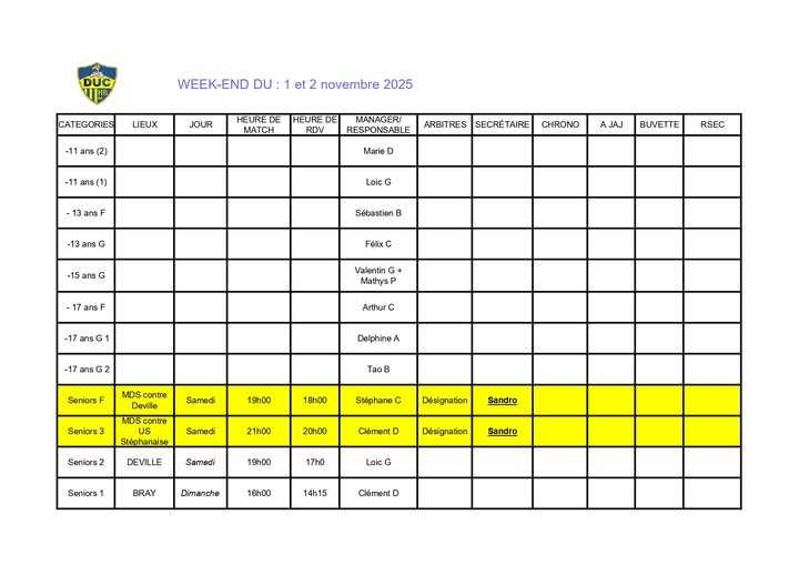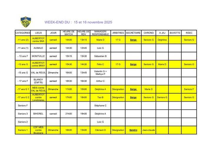 Bonjour a tous, voila le planning du week-end a venir ( et oui même pendant les vacances nos seniors jouent 😉 )