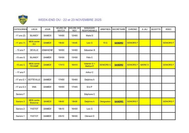 Voici le planning du week-end à venir.