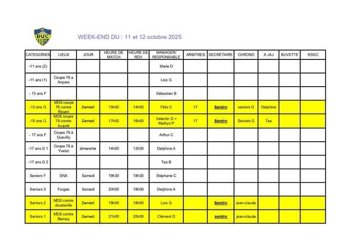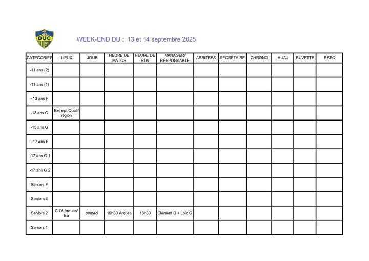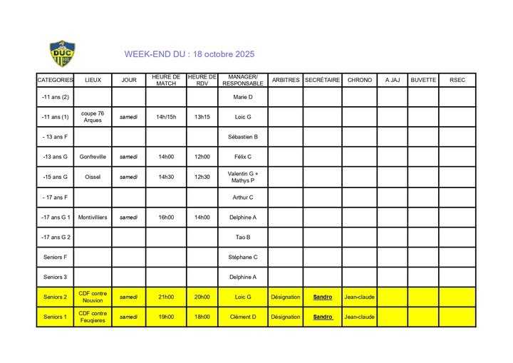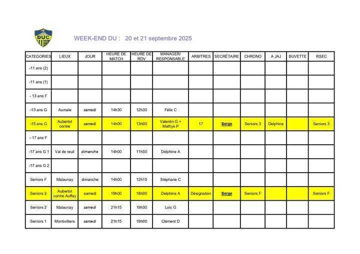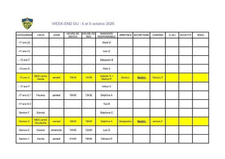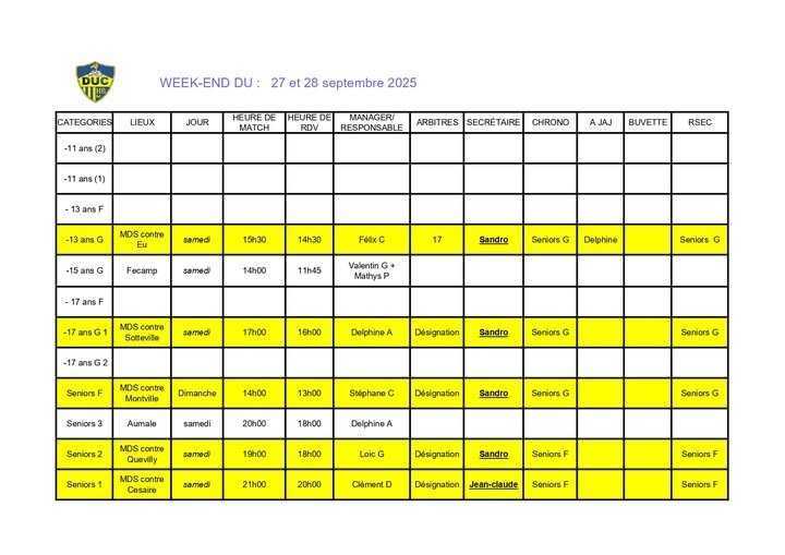 Voici le planning du week-end à venir.